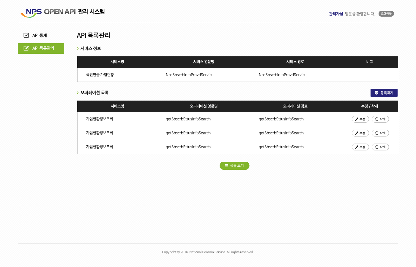 NPS Open API System Zoom+ Information National Pension Service Open API Management System Specification Website Design / Publishing HTML5 / Crossbrowsing jQuery / Javascript Credits especial design More http://openapi.nps.or.kr/openapiadmin 목록 KOFIC Copyright Protection System Website Publishing (HTML5) Cheil IdeaPanel Admin Website Publishing (HTML5) NPS Open API System Website Design + Publishingn Cheil Top Browser Mobile App Publishing Soribada BIGBANG Event Mobile Web Publishing KOFIC IP/DCATV Statistics System Website Publishing (HTML5) WGA China Teaser Website Design + Publishing Giovanni Diamond Website Design + Publishing KAEE Exhibition Facebook Facebook Design + Publishing Page 1