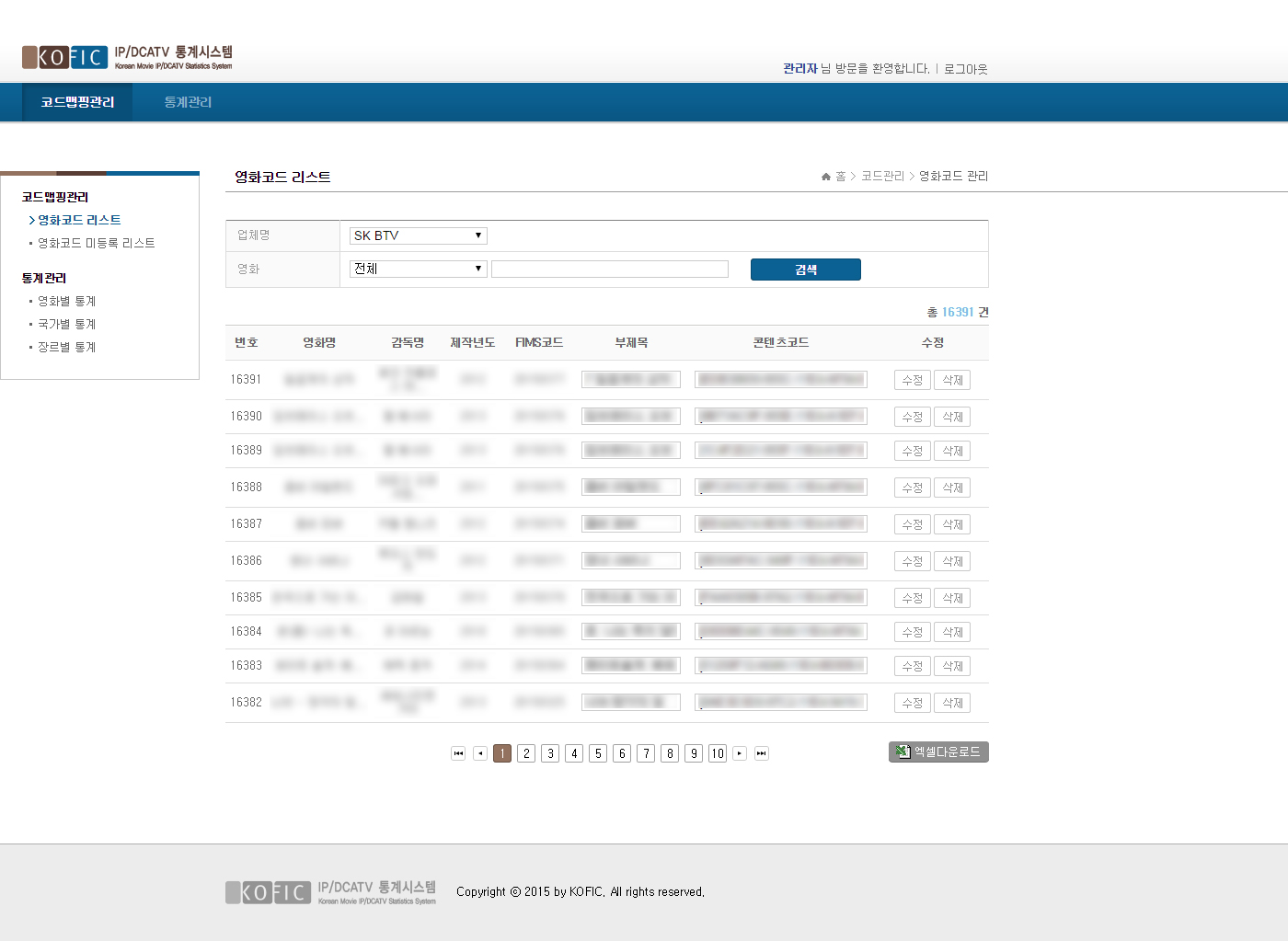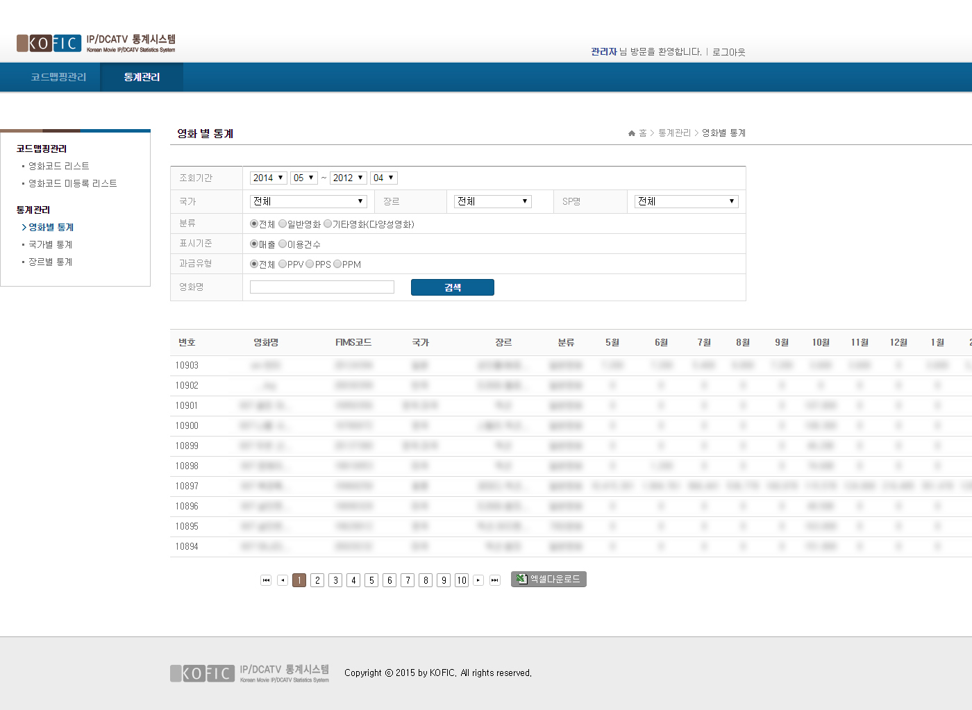 KOFIC IP/DCATV Statistics System
