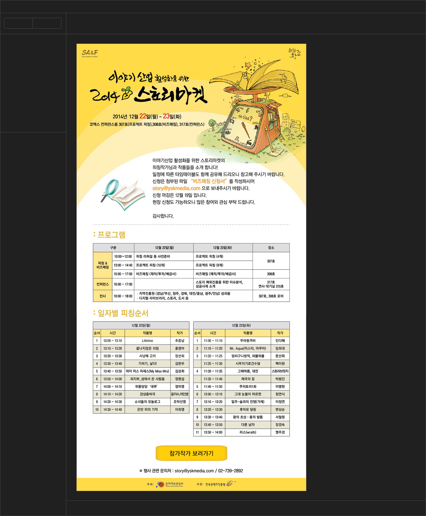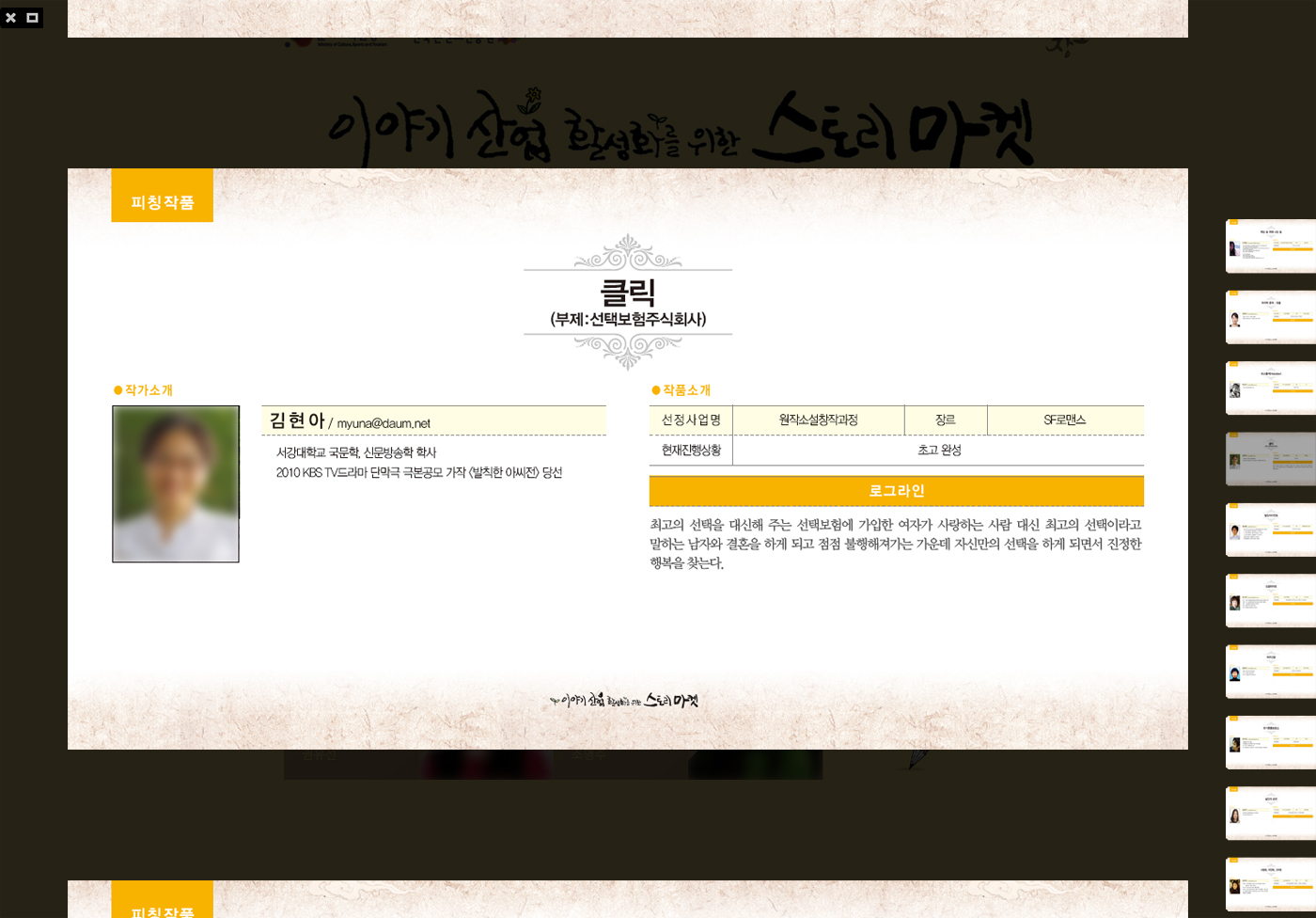 KOCCA Stroy Market Zoom+ Information KOCCA Stroy Market Introduction of Authors Specification WordPress Website Theme Development (Design / Publishing) Credits especial design More http://www.storymarket.kr/ 목록 KT Group Blog WordPress Website (Development) YSK Design WordPress Website (Customized) Deer Design WordPress Website (Customized) KT TAS Exhibition WordPress Website (Customized) KT Klive K-POP Experience WordPress Website (Customized) SANGMIN S.D Website Publishing (HTML5) Korea 3D Printing Association WordPress Website (Customized) KOCCA Stroy Market WordPress Website (Development) Teev Co. WordPress Website (Development) Page 12